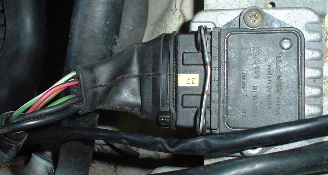 Well, following the procedure in the Hayne's Manual, I started to diagnose the ignition system. The first step was to see that current was reaching the transistorized coil ignition (TCI-H) unit in the firewall: