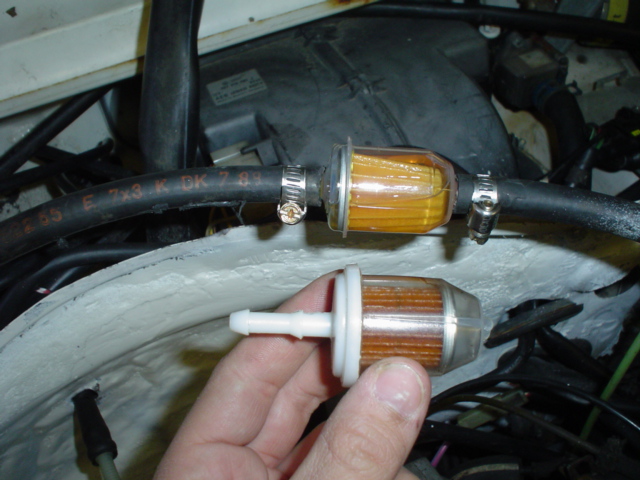 Had to get a new filter. Here's a pic of the previous one and the new one. Note the previous one's color as it was dirty from whatever contaminants were in the old diesel fuel line.