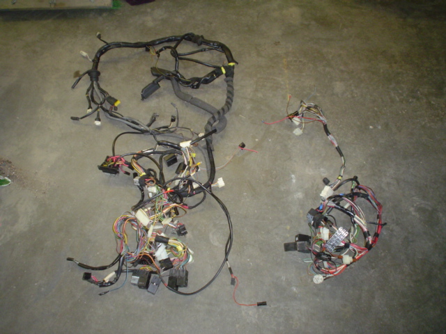 To put it in perspective, here is the pulled wire harness (left) laid out on the garage floor next to the harness Dowe pulled from a stock polo in Europe (right):