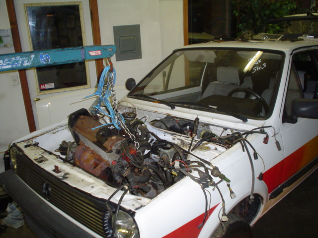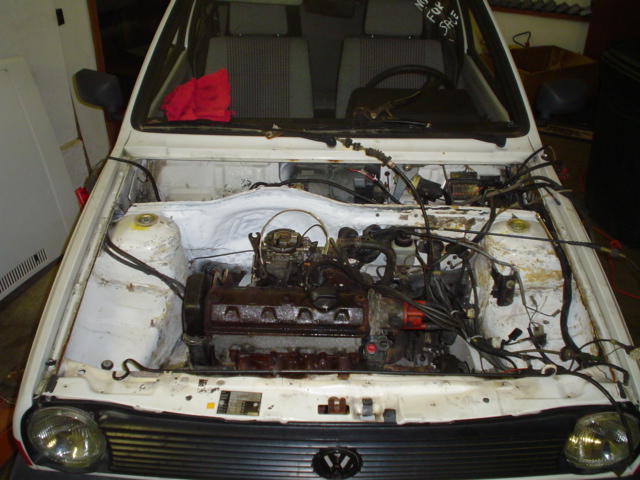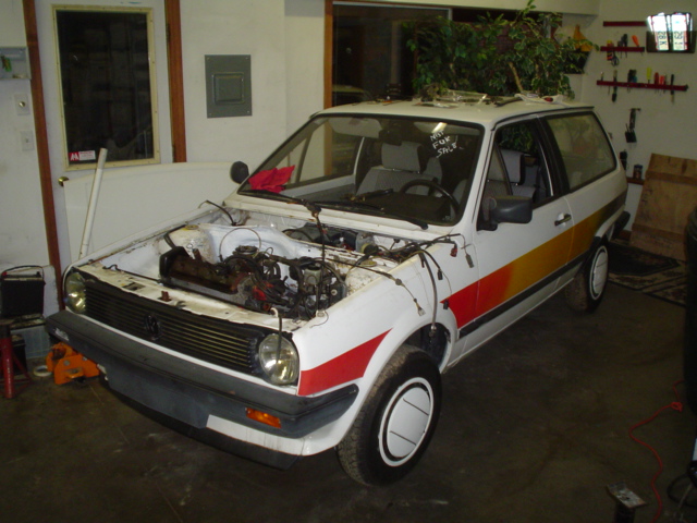 Unfortunately, the axles that were in the car are not the right axles for the 1.05 Liter's transmission. The right axle is a little too long, and the left axle is way too short. I'm going to have to find new axles next, but in the mean time plan on getting the cooling system hooked up next, followed by the electrics and everything else.