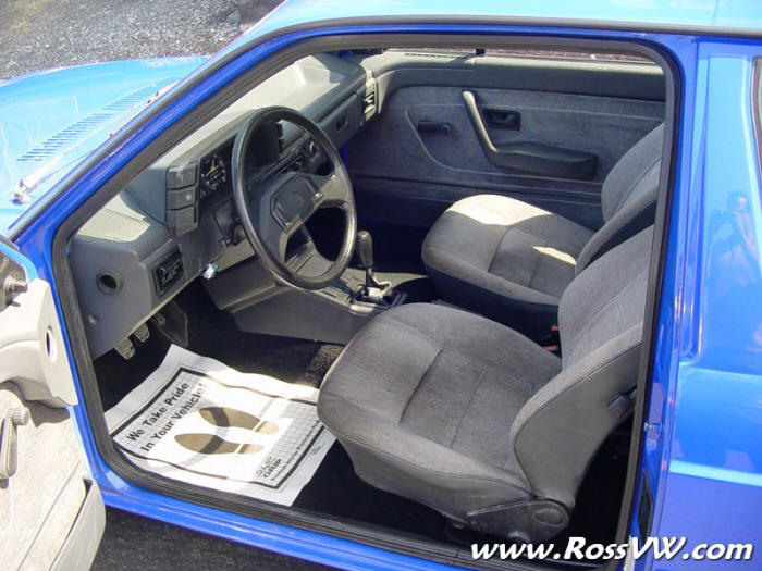 I had the car completely professionally repainted in VW "Jazz Blue Pearl," a color most notably found on the 20th Anniversary GTI, but also available on earlier Cabrios and GTI's too. Certainly an interesting car which I created more for the fun of it than anything else. This FOX even has the factory flip-up sunroof! Click here to go back.